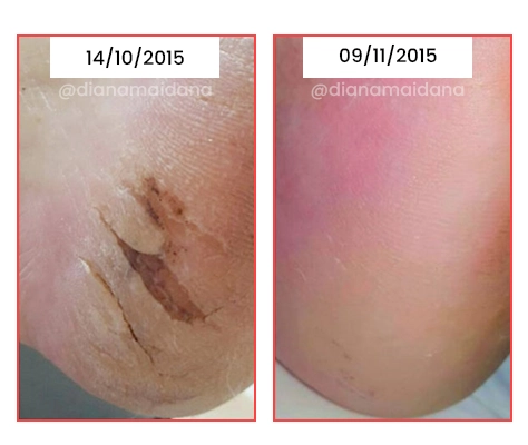 Pés com fissuras que causam dor e desconforto, podendo até sangrar. Pele constantemente seca, mesmo após usar diversos hidratantes. Irritação, vermelhidão e coceira causadas por dermatite.